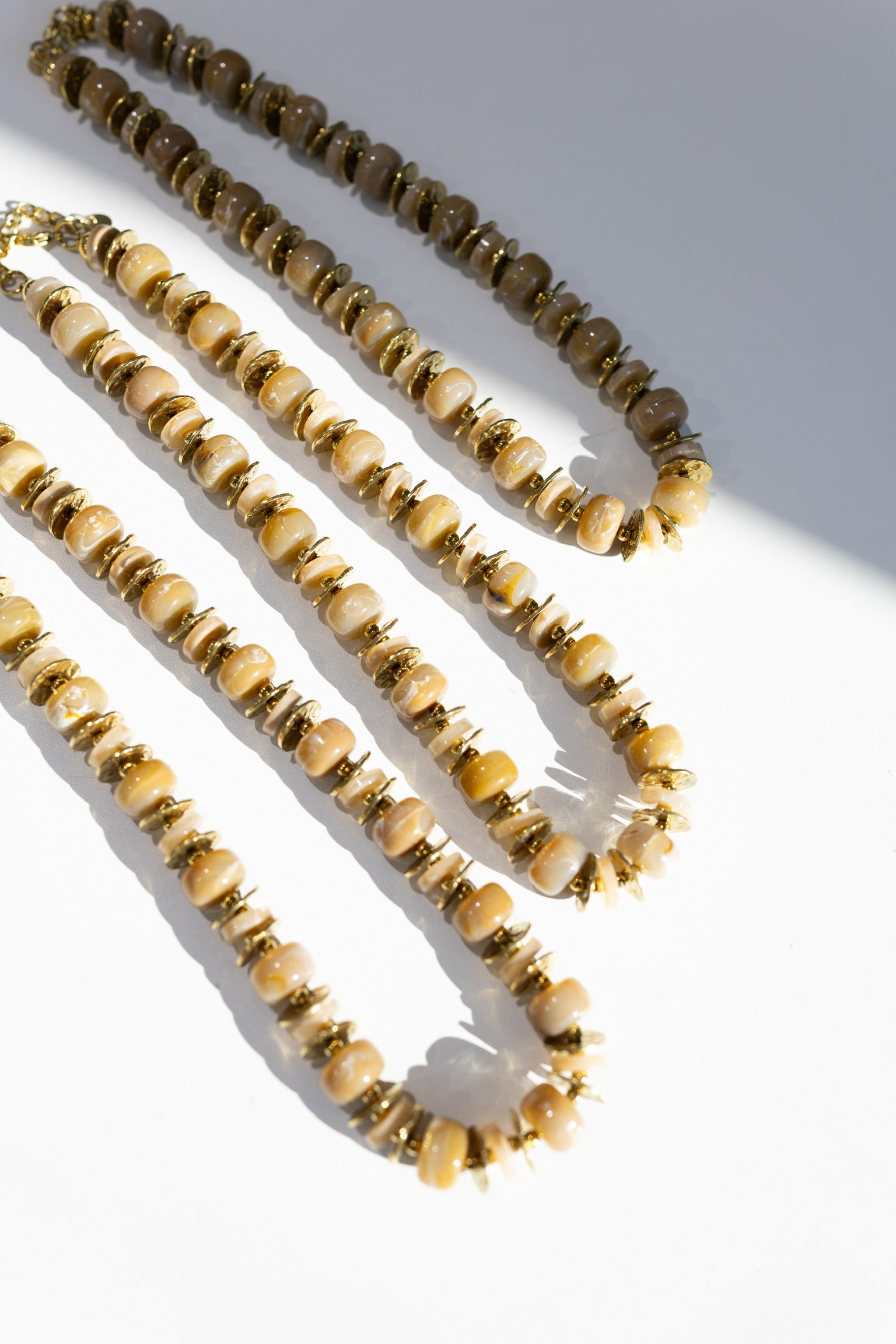 This necklace is full of personality with its interestingly shaped chunky beads, gold details, and unique colors. We love the gold disk beads mixed in with chunky beads!