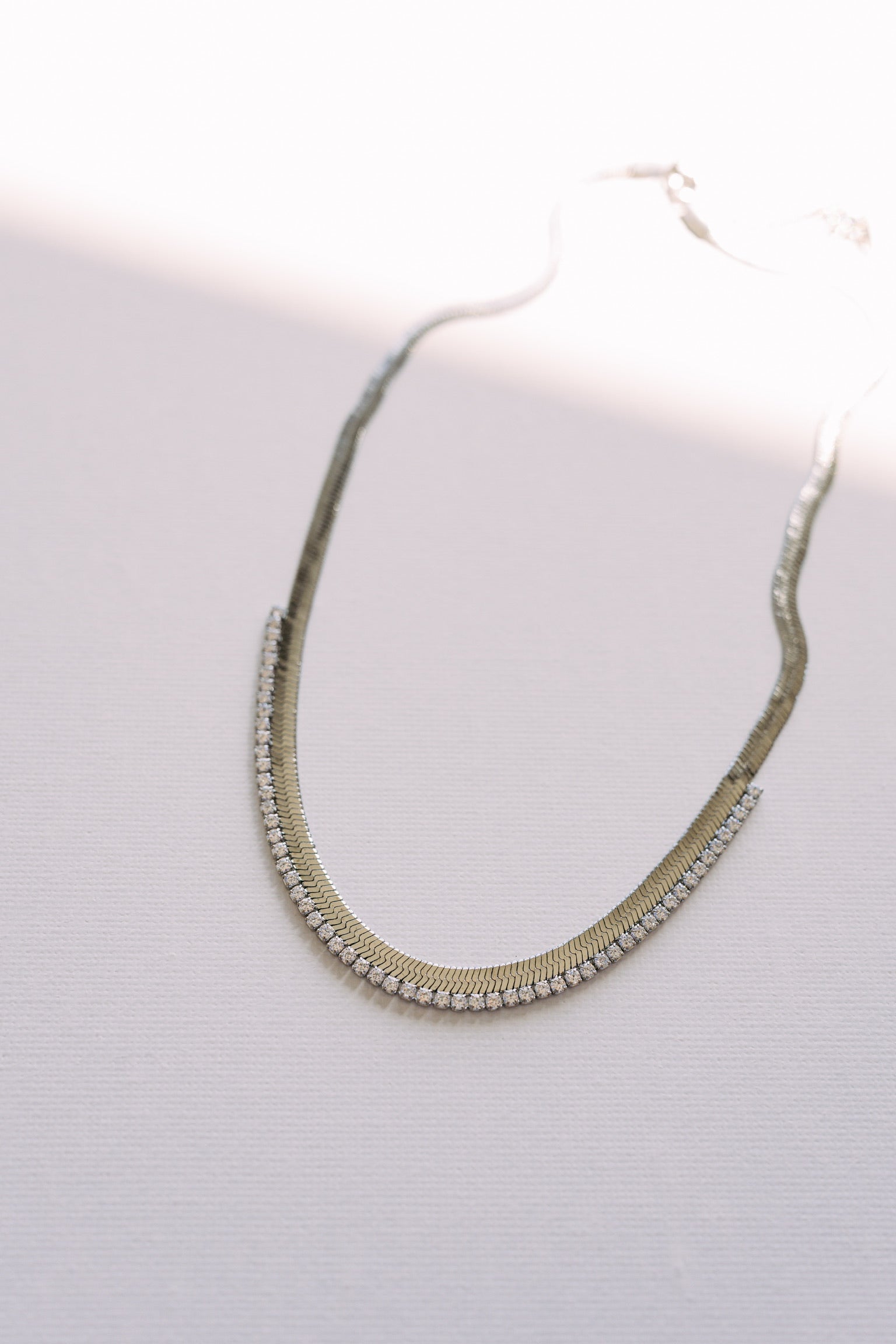 Noni Crystal Snake Chain Necklace || Silver or Gold